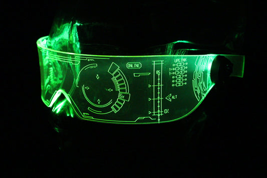 The original Illuminated Cyberpunk Cyber goth visor Deus Hex Green