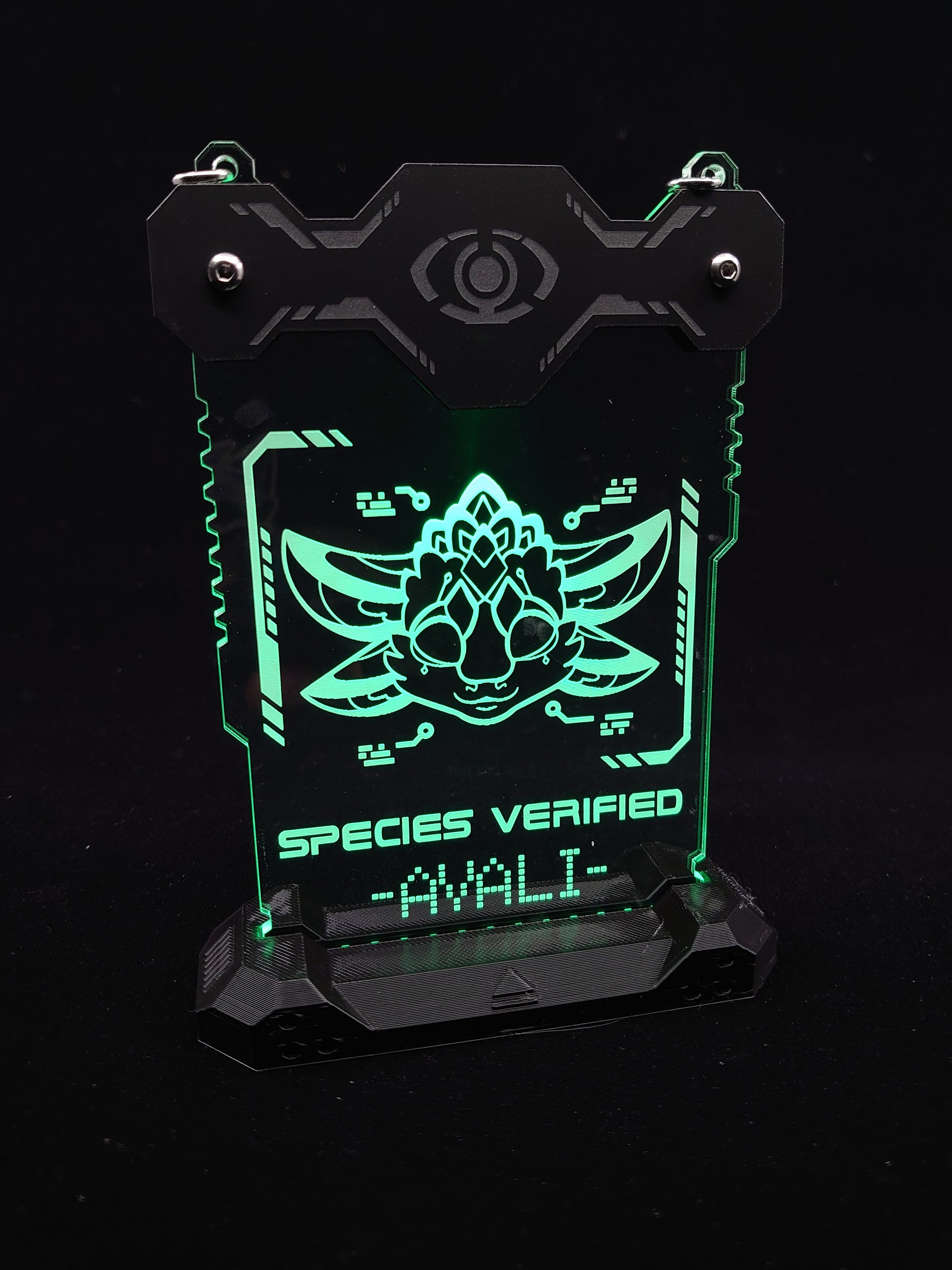 Available as a stand alone led badge (1x cr2032 coin cell required- not included), with optional 3d printed display base addon, or RGB led base with 3d printed dock so you can both wear and display all year round!